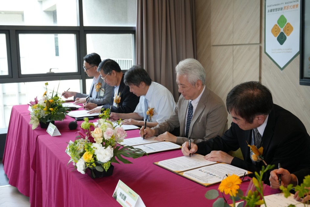 (2024永續智慧創新黑客松競賽八校聯合MOU簽署中)